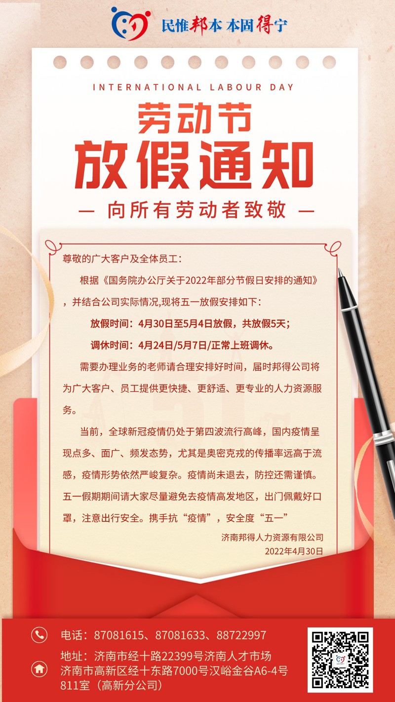 • 2024年5月濟南邦得人力資源有限公司高新分公司關(guān)于濟南...